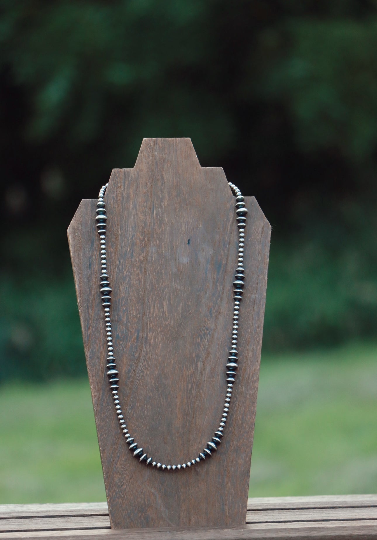 This necklace measures 22” with a 2” extender! 9, 8, and 5mm saucers with 4mm sterling silver pearls!